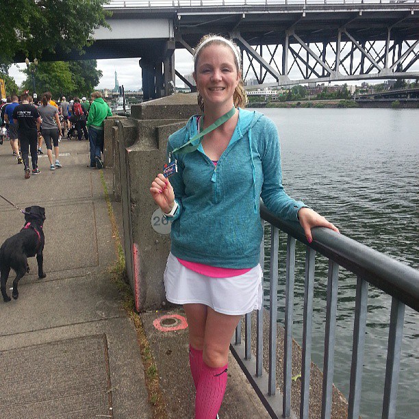 Overall I would buy this skirt again, I am happy with the way it fits and the coverage. I also like the option to buy it in tall so it is a little longer. Katie has it in black and because I basically do everything she does I bought it in black too. Now I want the bright pink one that this skinny chick wore last weekend. The Lulu Pace Setter skirt is a good skirt and I like that it isn't as heavy as some other running skirts I've checked out. I do have thighs that touch (oh my!) and was nervous the shorts would ride up really bad but they didn't. They came up a little bit but not so much that it was uncomfortable. 2 thumbs up!